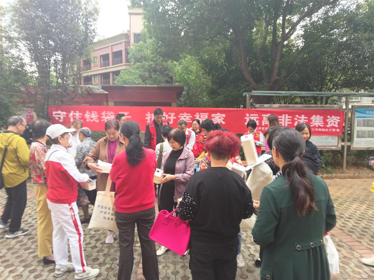 近日,武汉经开区沌阳街道红升社区开展“社企共护钱袋子,筑牢安全防火墙”主题宣传讲座及活动,通过知识普及、案例警示、发放宣传手册等形式,帮助居民识别非法集资陷阱,守护居民家庭财产安全。