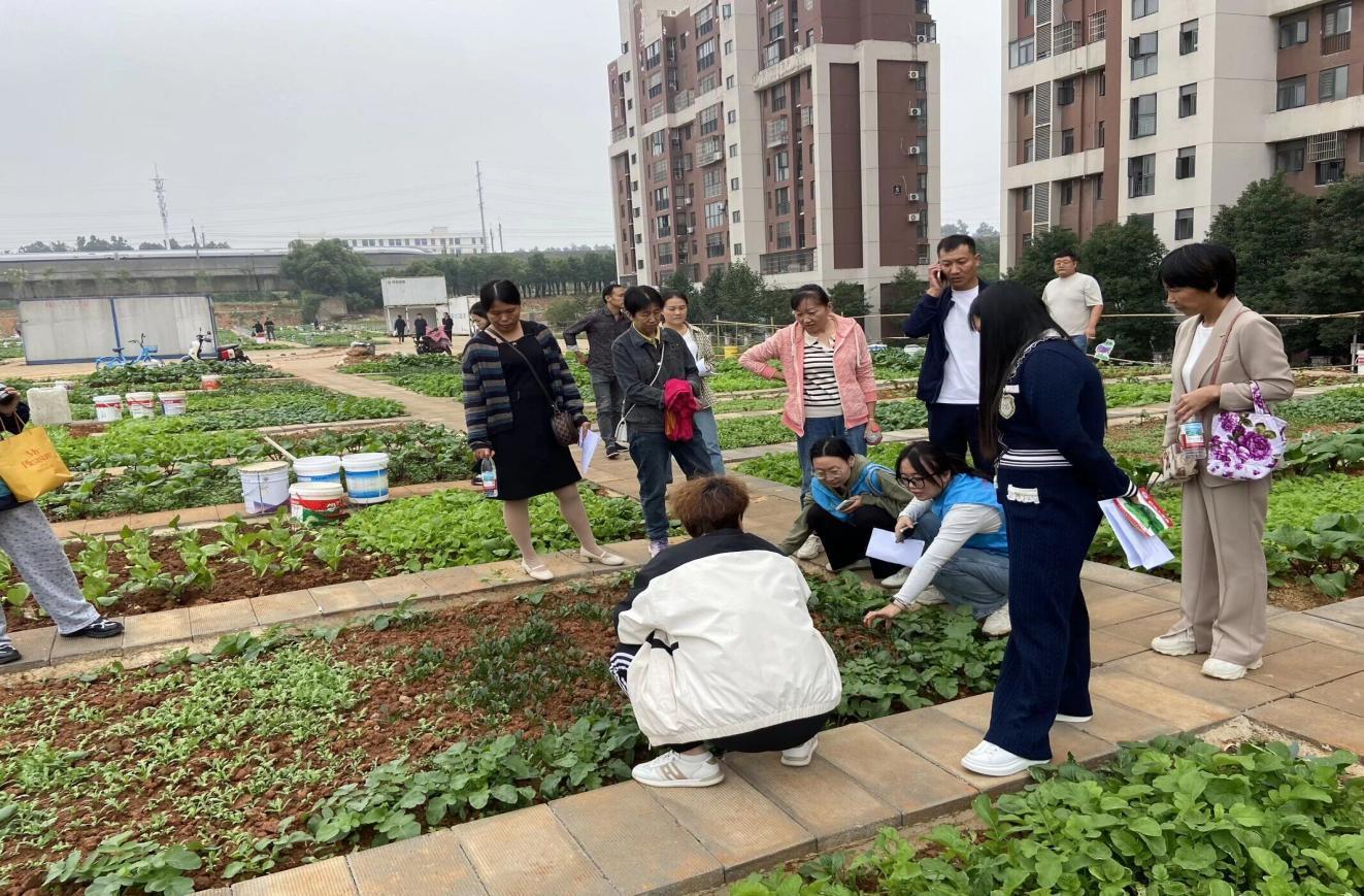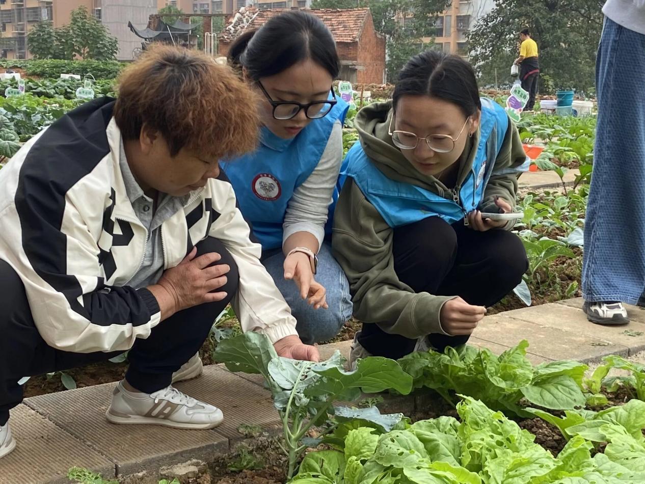“这块土结块严重,得先深翻松土,再掺点腐叶土改良肥力。”“施有机肥时一定要选完全发酵的,不然会烧根还会有异味,大家可以看包装上的发酵标识。”在共享菜园,一场“田间课堂”随即开讲。华中农业大学的志愿者蹲下身,抓起一把土问诊、开方,志愿者的讲解通俗易懂,居民们听得认真。