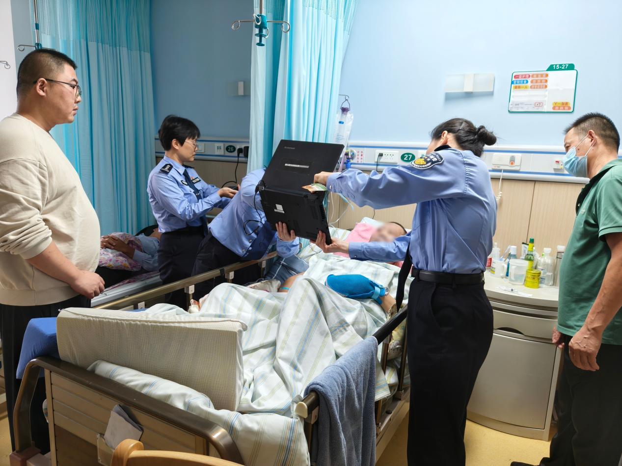 10月15日下午,天空阴沉,江城突然降雨。“暖心江岸”政务服务团队的脚步却未曾停歇。首站抵达长航医院时,卧病在床的许爹爹不仅无法起身,手部还缠着绷带,指纹采集一度遇阻。民警任艳、辅警杨燕俯身轻托其手,反复耐心尝试,最终成功完成信息采集。