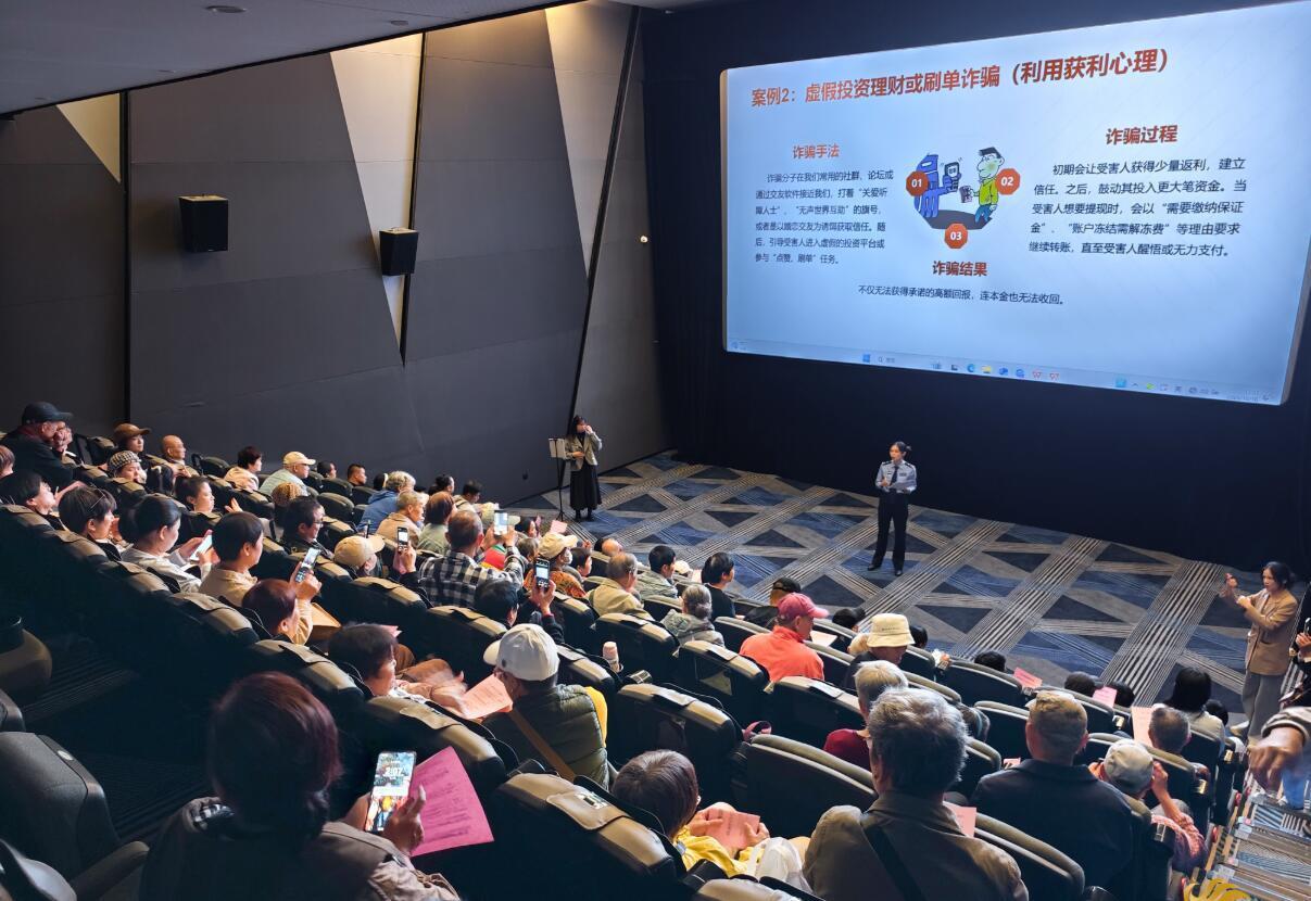 10月16日,位于武汉市江汉区的银兴国际影城M+店大厅里热闹非凡,80余名聋人群众正兴致勃勃地参与浦发银行武汉分行设置的反诈互动游戏。江岸区残联及聋协会携手湖北银兴院线集团票务分公司、武汉市公安局江岸分局一元街上海派出所、浦发银行武汉分行,共同举办听障群体专场反诈宣传活动,以“趣味互动+专业宣讲+主题观影”的形式,为听障朋友送上一堂生动的反诈“安全课”。