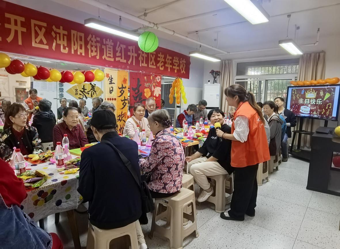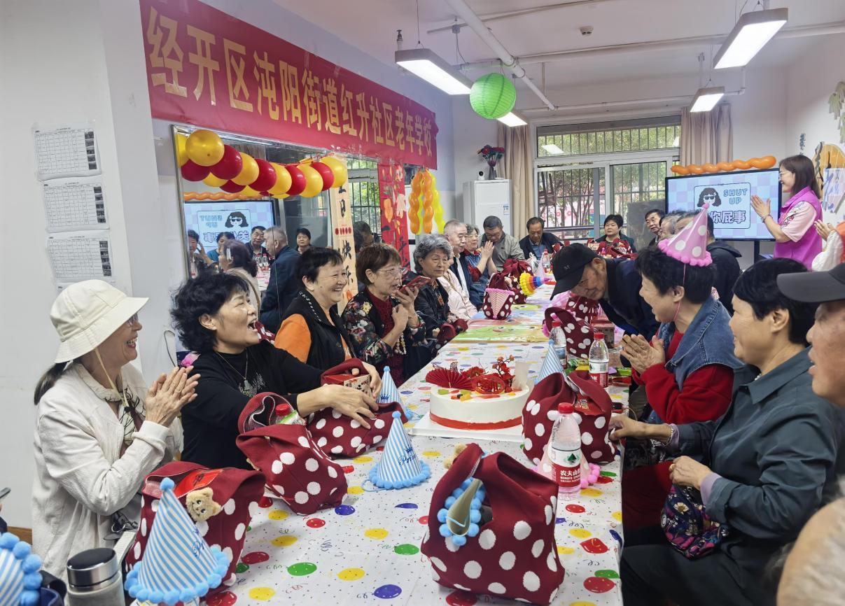 近日,武汉经开区沌阳街道红升社区举办了一场温馨而欢乐的老年人集体生日会,为30位65岁以上的长者送上了一份特别的生日祝福。