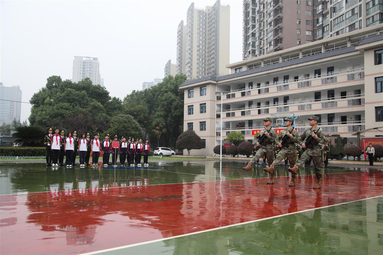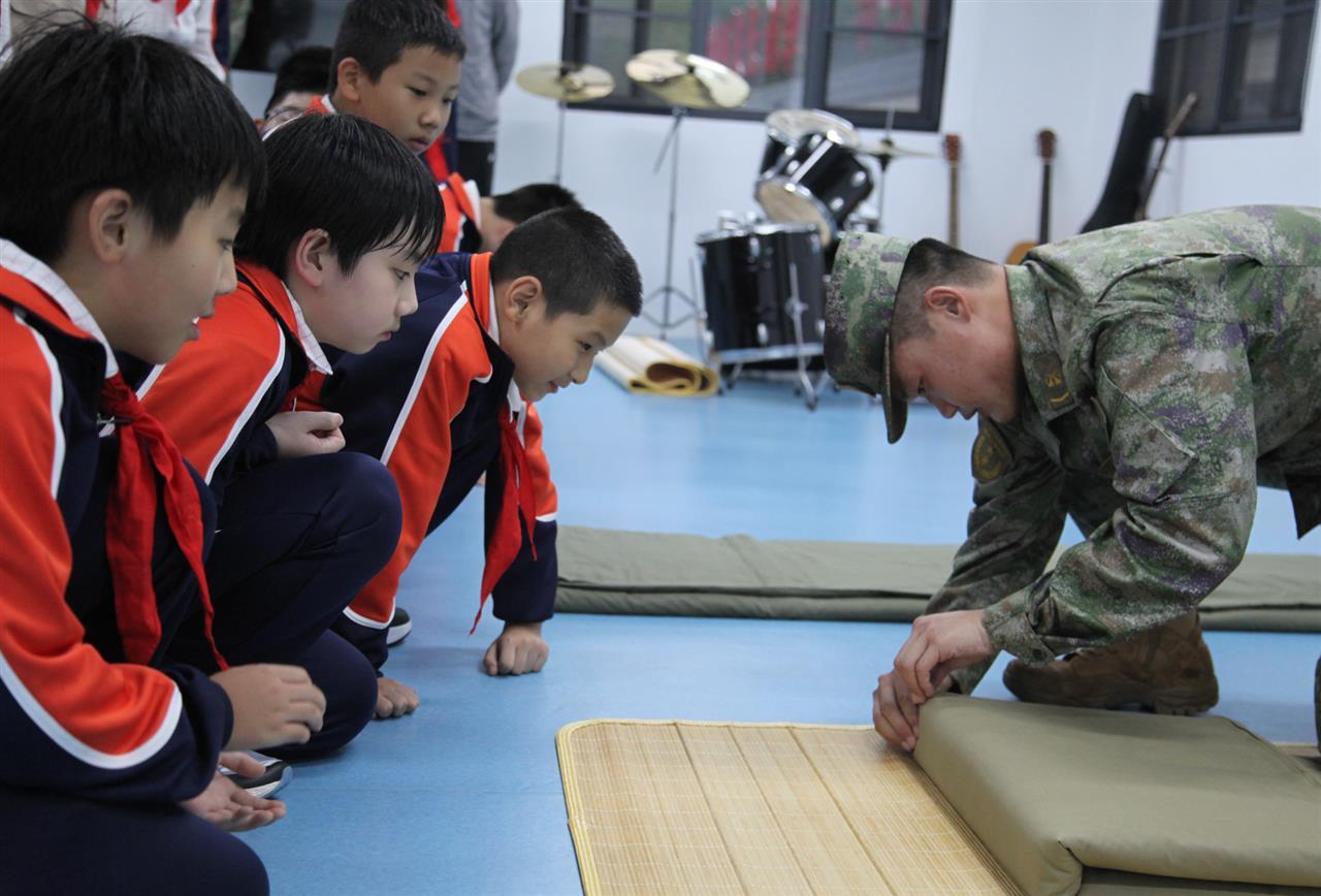 随后的“实战环节”更让现场气氛推向高潮,官兵们手把手教队员们基本动作,“停止间转法”“齐步行进与停止”“正步走”,原本的“观摩学习”变成了“亲身体验”。有的队员虽然动作还很稚嫩,但眼神格外认真,努力跟上节奏。“保家卫国不仅需要勇气,还需要过硬的本领!”南湖第二小学的队员潘宇锋说道。