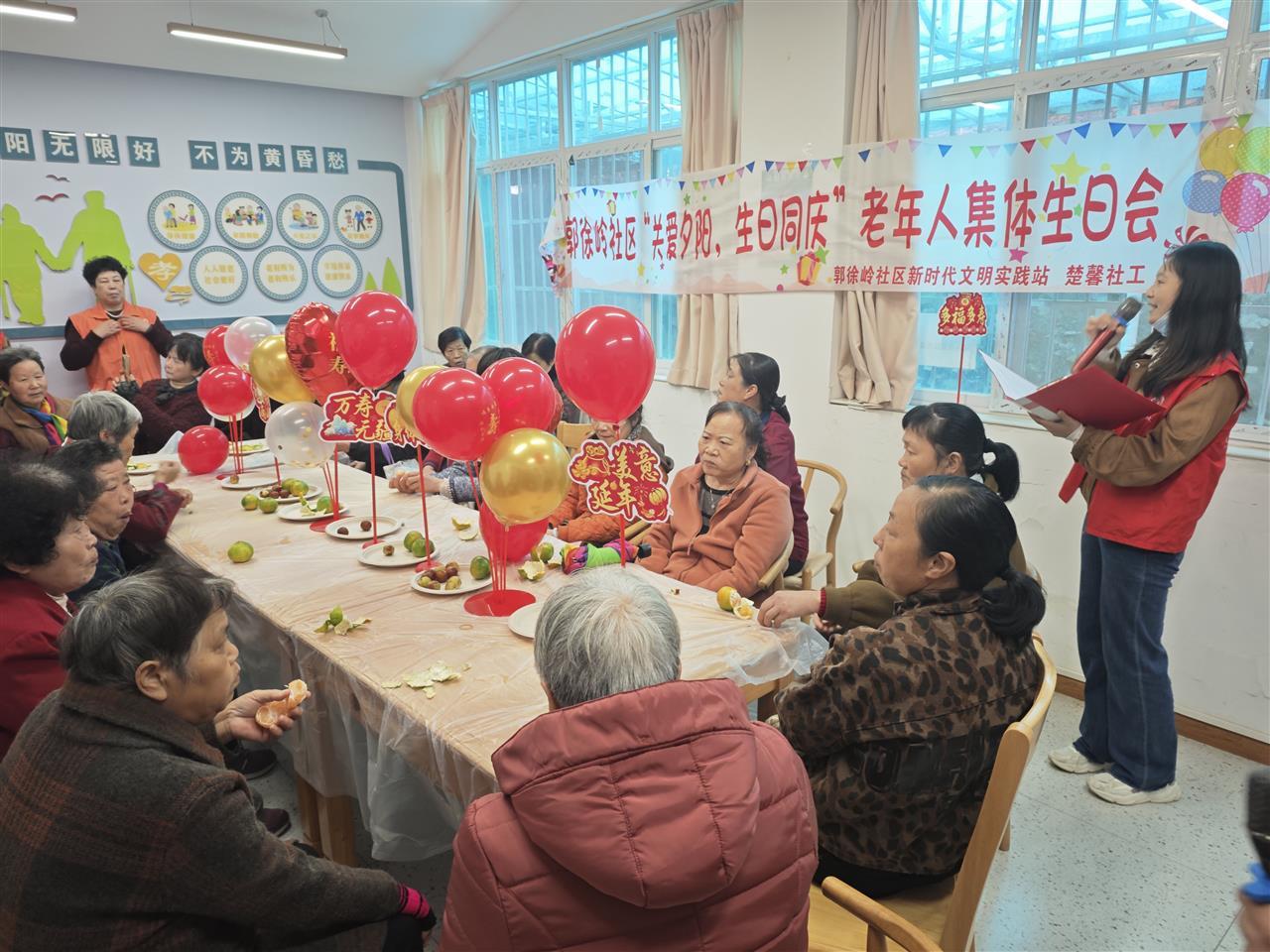 10月20日,武汉经开区沌阳街道郭徐岭社区联合武汉楚馨社会工作服务中心,在社区老年人服务中心开展“关爱夕阳,生日同庆”老年集体生日会活动,为社区本季度过生日的20余名老年居民送上温馨祝福。