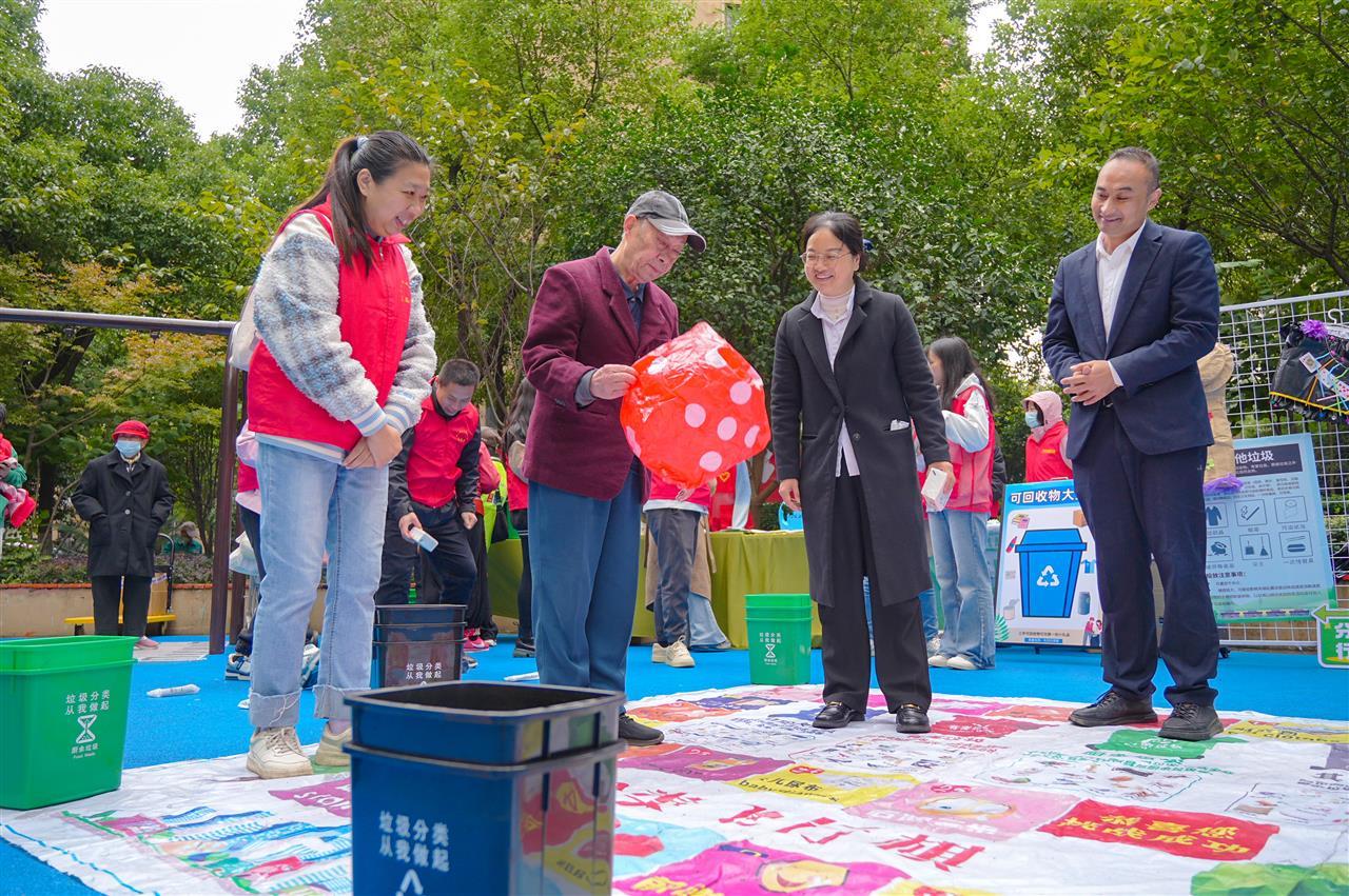 活动现场最热闹的,当数“两袋对两桶”宣传区。参与居民免费领取了两分类垃圾桶,志愿者则围绕“两袋两桶”居家分类法展开详细讲解:“在家中规范使用分类容器,提前分装厨余垃圾与其他垃圾,就能从源头减少混投问题。”