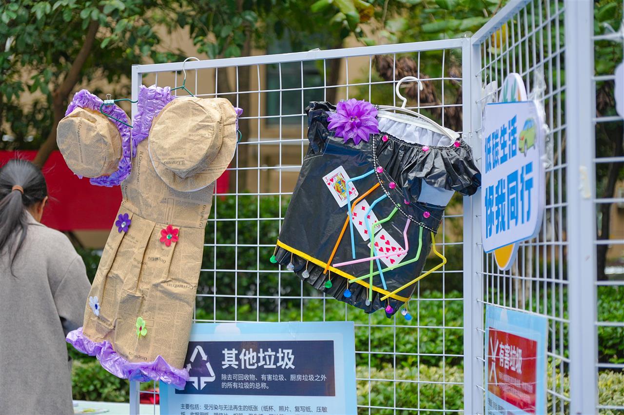 现场展示的手工艺品格外引人注目——有用废弃材料拼贴而成的装饰画、由塑料瓶巧妙变身的精美花篮、设计独特的环保时装……居民李女士驻足在一幅用废旧报纸做的“裙子”画前,忍不住拍照留念:“太有创意了,以后我家孩子参与活动的时候,也会带她做一条漂亮裙子,肯定好看!”这些由固体废弃物创意改造的作品,赢得了众人的连连赞叹,让居民们真切体会到“垃圾是放错位置的资源”。