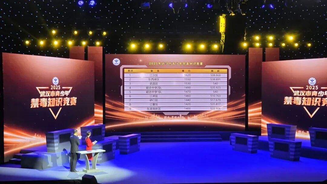 青春不“毒”行,筑梦成长路。10月21日下午,2025年武汉市青少年禁毒知识竞赛复赛激烈上演,来自全市的16支代表队经过智慧与速度的比拼,最终江汉区代表队以总分1620分的优异成绩拔得头筹。江汉区队、东西湖区队、武昌区队等八支队伍成功晋级,将于10月底会师总决赛,角逐“答题王”与团队冠军的最高荣誉。