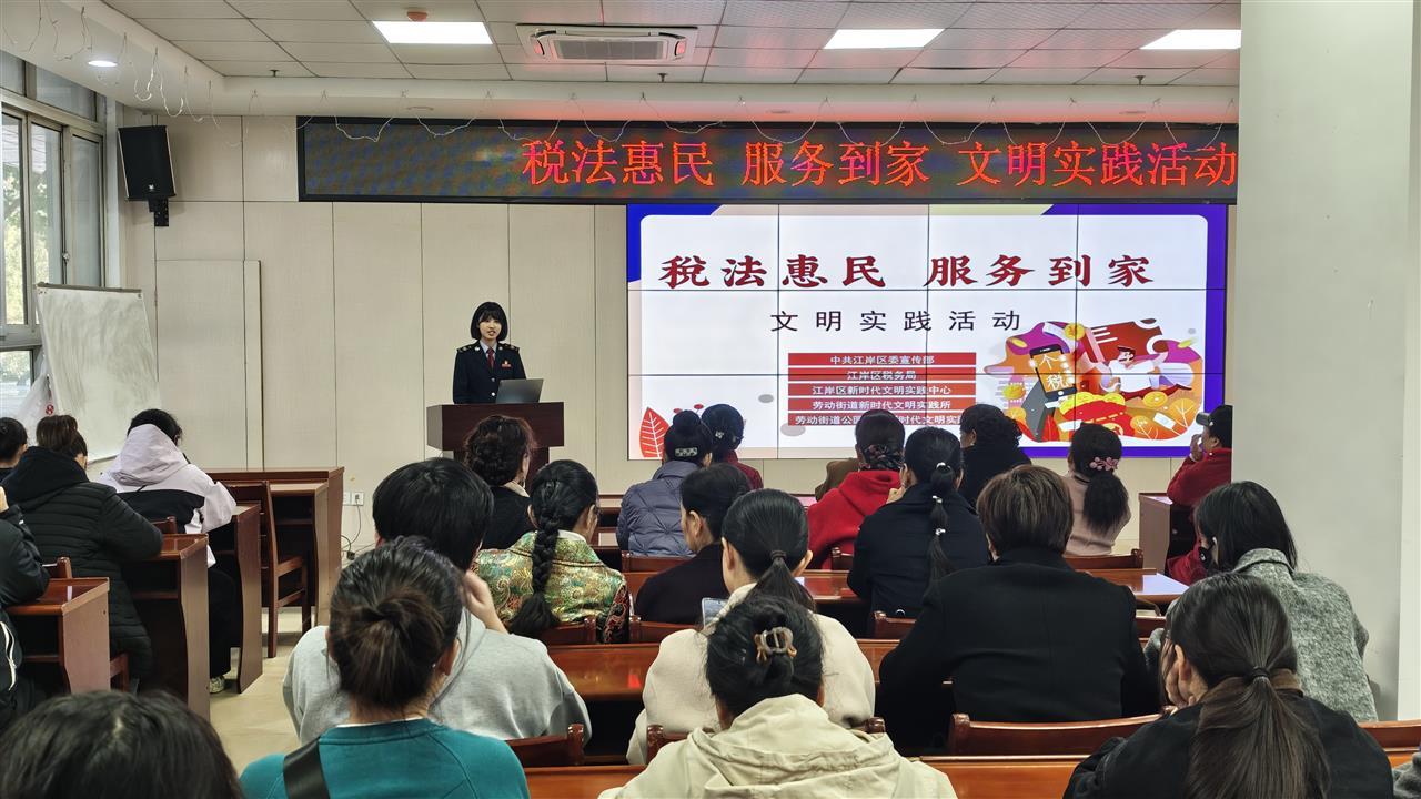 为倡导依法纳税、诚信纳税的良好风尚,增强社区居民的税法知晓度和遵从度,10月22日上午,由中共江岸区委宣传部联合全国文明单位江岸区税务局策划的“税法惠民 服务到家”文明实践活动在劳动街道公园社区新时代文明实践站举行。活动中,工作人员用通俗易懂的语言,向居民普及专业的税法知识,提供政策咨询,从“云端”直达基层群众。