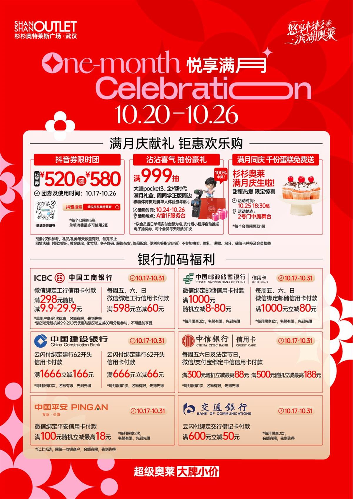 10月25日,武汉杉杉奥特莱斯迎来满月庆,该商场将开启“悦享满月”满月庆活动,团券、玩法、爆款等全线狂飙,为广大消费者带来实惠。