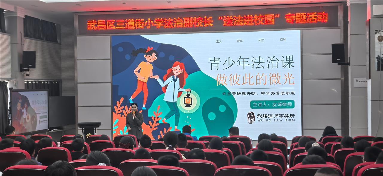 10月22日,武昌区三道街小学法治副校长、武昌区司法局副局长甘波带领普法团队走进校园,面向150余名学生开展了一场未成年人保护主题普法宣传活动。