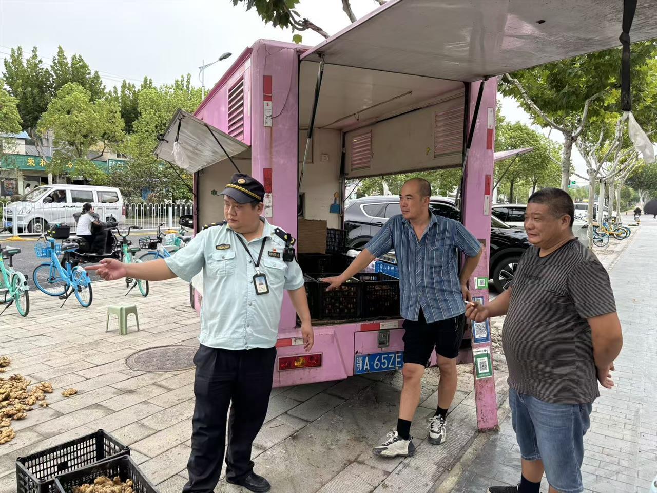 “太感谢你们了!我保证晒完马上收走!”李师傅主动调整了晾晒位置。2小时后,城管队员再次来巡查时,李师傅已将晒透的生姜收回,地面清扫干净。