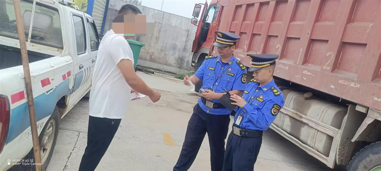 9月28日,黄陂城管综合执法大队腾龙中队执法队员巡查至辖区汤云海路时,发现该路段正行驶着一辆渣土车,执法队员对该车辆司机进行日常询问和检查时发现,该车辆所属武汉某物流有限公司,并未办理任何建筑垃圾核准运输证件,其行为属于未经核准擅自运输建筑垃圾的违法行为,执法队员当即对该车辆违法行为进行叫停,并通知公司相关负责人到中队执法办案室接受调查处理。