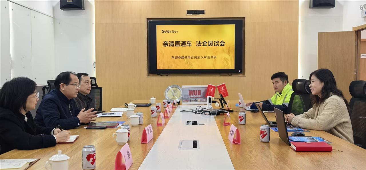 随后,与百威公司负责人开展“亲清直通车•法企恳谈会”。王彬林院长介绍了汉阳法院出台的“阳法十二条”优化法治化营商环境相关工作举措,并诚恳征求企业对法院工作的意见建议。百威公司陈美芳总监对区直机关工委关心支持企业发展表示感谢;对法院主动服务大局优化营商环境工作举措予以赞扬,并希望与法院进一步加强党建结对、法治宣传、以案释法等方面的沟通联系,促进企业高质量发展。
