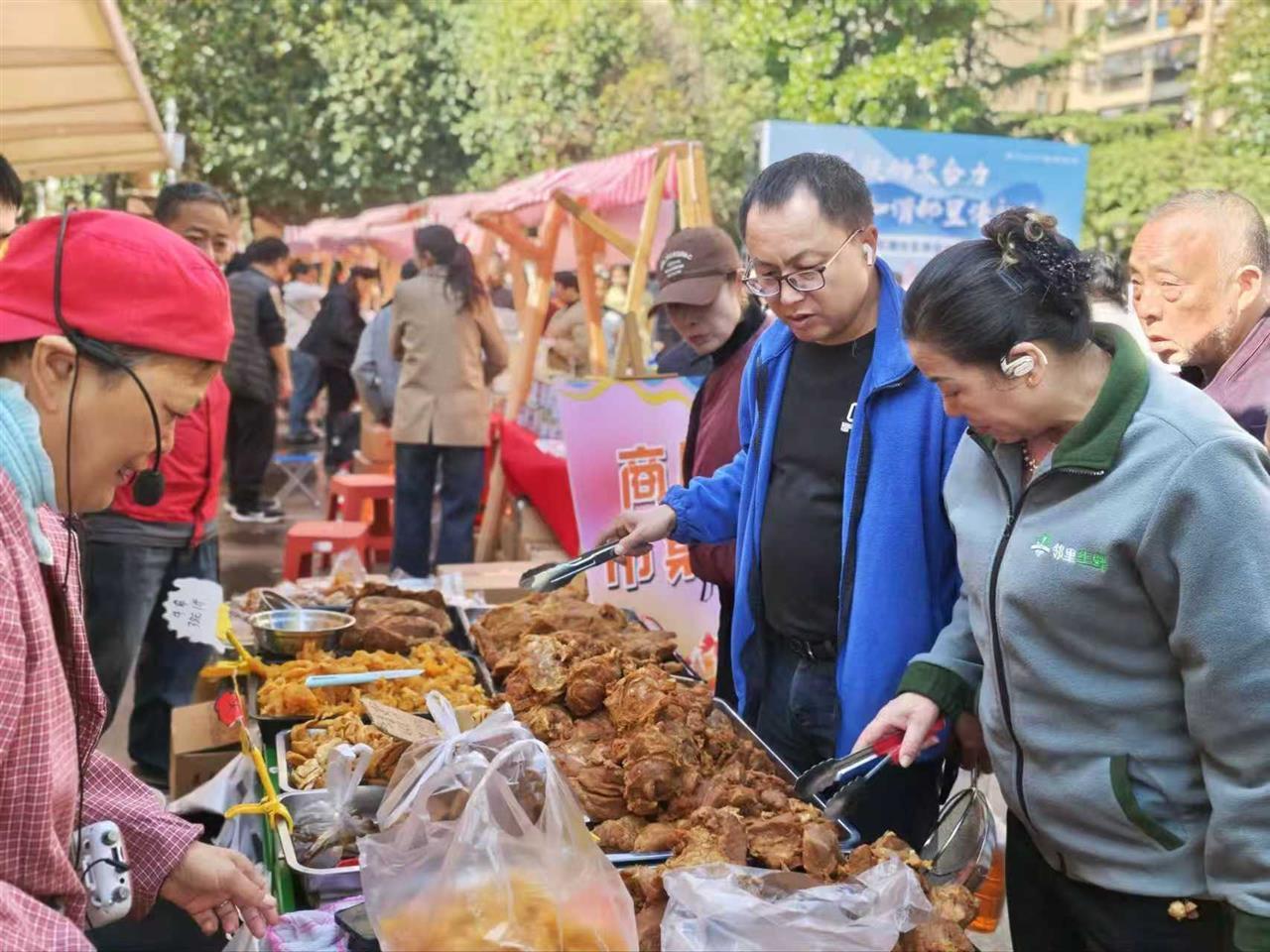 “有点过年赶集的味道了。”看到丰富的展销品,辖区居民感慨道。从本地老字号美食到特色农产品,从生活日用品到便民服务,商户们不仅展示优质商品,还提供免费试吃、手工艺教学等互动体验,让居民在轻松愉悦的氛围中增进对社区商业的认同。值得一提的是,众多爱心商户积极参与公益捐赠,通过“销售金额定向捐赠”方式将部分营业额捐入社区公益基金,用于困难群众帮扶、社区治理等公益项目,实现了“居民消费”与“社区公益”的良性循环。
