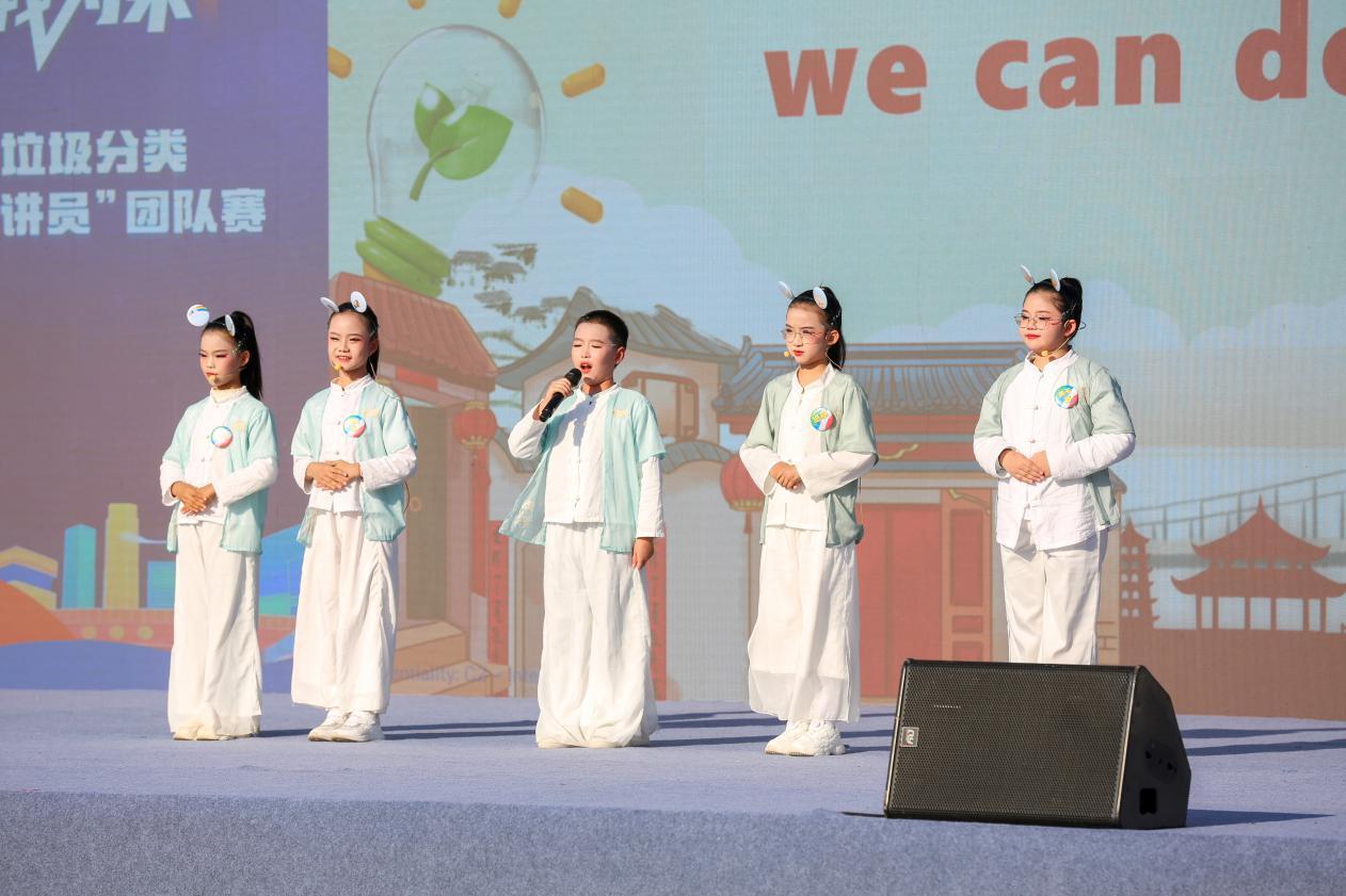 当天,多支来自高校、中小学校及幼儿园的参赛队伍带来创意十足的节目。江岸区选送的《魔法棒不见了——分类大挑战》充满童话色彩。节目中,武汉市实验小学的8名小学生化身垃圾分类小精灵和垃圾桶小精灵,上演一场垃圾分类知识问答大挑战。