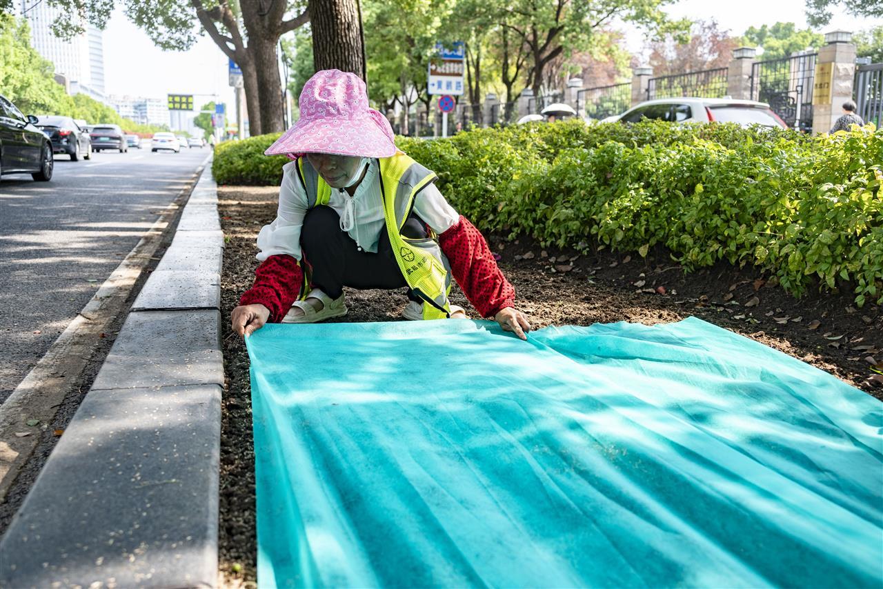 在东湖路套播作业现场,养护工人忙着给撒播的草籽盖上“保温被”。“无纺布就像给草籽盖了‘保温被’,既能保持土壤湿度,又能防止浇水时种子抱团。”武昌区城管执法局相关负责人表示,今年9月份,武昌区重点对东湖路、临江大道等主干道及黄鹤游园、万达游园等公共绿地实施套播,10月便可以看到效果,实现了15万平方米绿地的“无缝换季”。