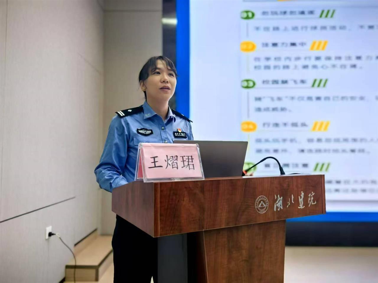 “新型毒品可能伪装成奶茶粉、巧克力等,大家在外出聚会时一定要提高警惕!”9月24日晚,湖北城市建设职业技术学院的报告厅内,民警王熠珺正在为学子们讲授“开学安全第一课”。她结合近年来发生的校园安全案例,围绕新型毒品防范、日常交通安全、宿舍消防安全等重点内容,用通俗易懂的语言为学生们敲响安全警钟。
