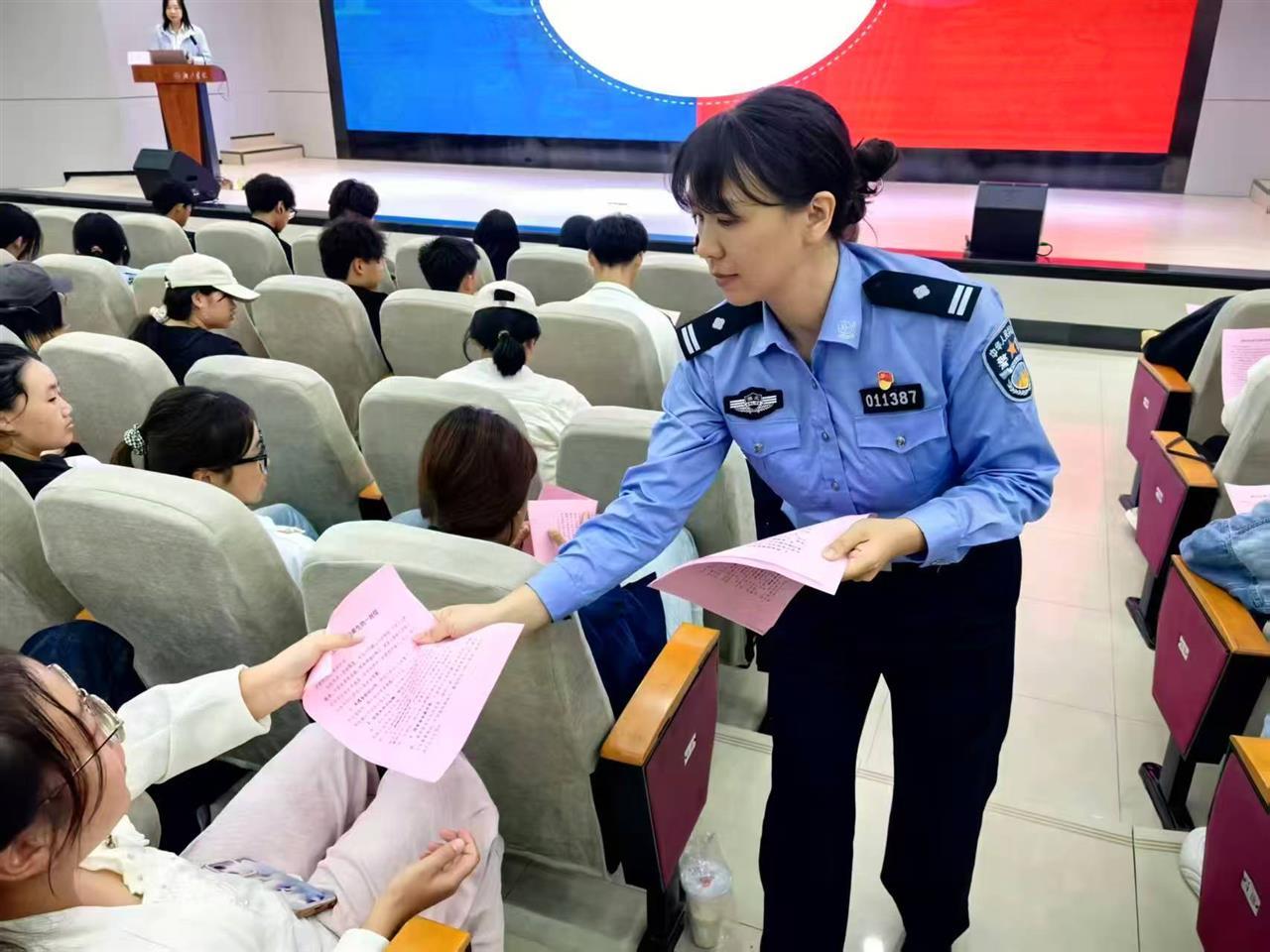 活动现场,王熠珺还向学生们发放了《武汉公安致大学新生的一封信》400余份,详细解答学生提出的安全疑问。为扩大宣传覆盖面,此次活动采用“线上+线下”同步开展的模式,除400余名学生干部、各学院代表现场参与外,另有4200余名学生在班级通过视频同步观看,真正实现校园安全宣传“不漏一人”,切实筑牢校园安全底线。