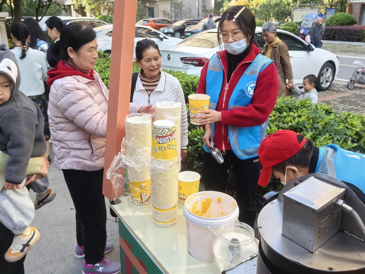 在趣味文化互动区,欢声笑语不绝于耳。滑稽可爱的小丑表演引得孩子们阵阵欢呼,现场制作的民俗炸爆米花在“砰”的一声中散发出浓浓怀旧气息,棉花糖制作点前也围满了大小朋友,大家在甜蜜中重温童年记忆,感受社区生活的温馨与乐趣。