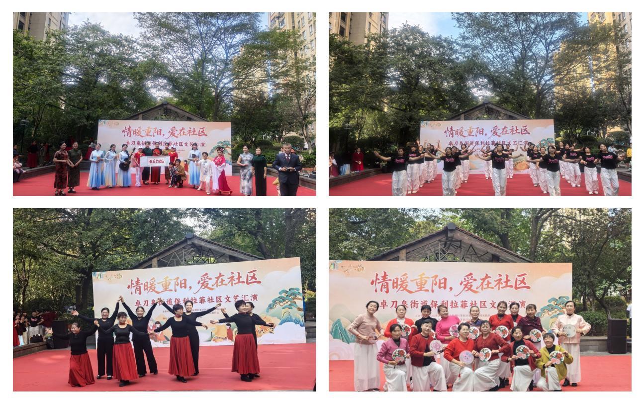 10月24日,武汉市洪山区卓刀泉街道保利拉菲社区举办“情暖重阳爱在社区”文艺汇演活动,营造欢乐祥和的节日氛围,为辖区老年朋友们送上了一场精彩纷呈的文化盛宴。
