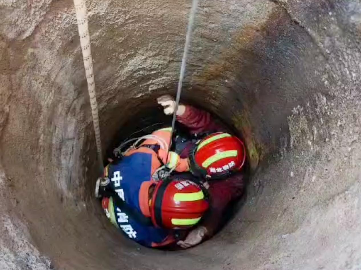 消防员一边安抚老人的情绪,一边在井口处迅速架设救援三脚架。由一名体型瘦小的消防员穿戴好个人防护装备,携带救援绳和救援腰带下井。靠近被困老人后,消防员立即用救援腰带为老人做好安全防护,上方的消防员合力拉升绳索将老人平稳转移至地面。经过17分钟的紧张救援,老人被成功救出。随后,消防员把老人抬上担架,移交给现场120医护人员送往医院救治。