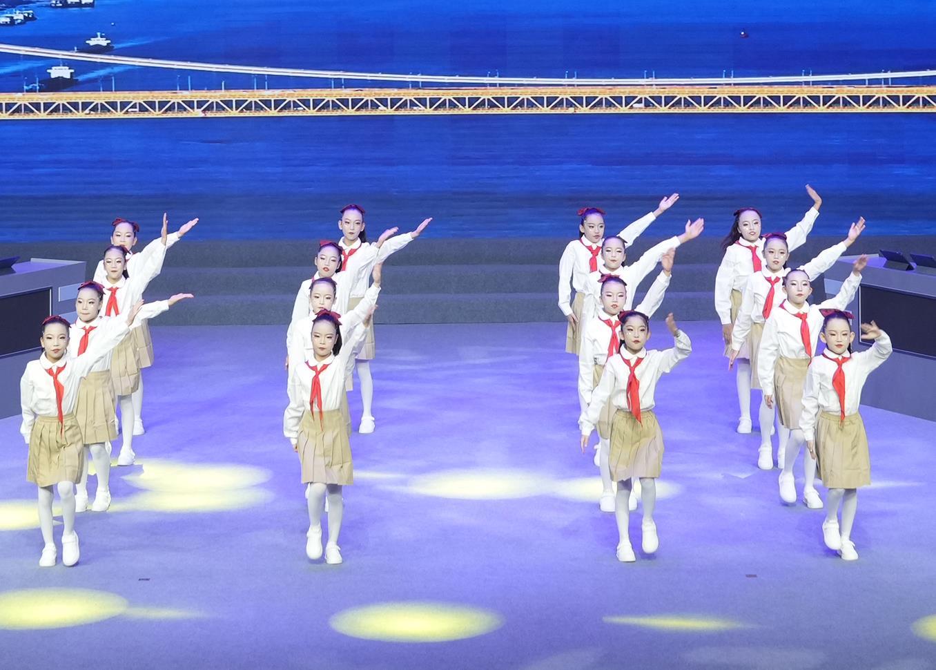 决赛序幕由光谷第三十二小学同学们带来的《禁毒拍手舞》拉开。欢快的旋律伴着整齐划一的节拍,如灵动音符般跃动在演播厅内,瞬间点燃现场氛围。随后,8支决赛队伍依次登场,队员们不仅展现出昂扬的精神风貌,更彰显出新时代青少年防毒拒毒的坚定决心。