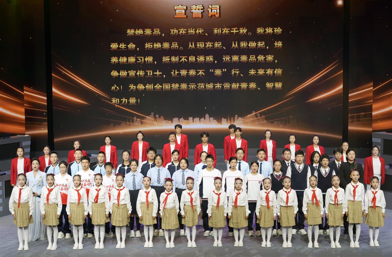 颁奖仪式后,全体选手、演员重返舞台,面向全市青少年发出“争当禁毒小卫士”的庄严倡议:“禁绝毒品,功在当代、利在千秋。我将珍爱生命,拒绝毒品。从现在起、从我做起,培养健康习惯,抵制不良诱惑,远离毒品危害,争做宣传卫士,让青春不‘毒’行、未来有信心!为争创全国禁毒示范城市贡献青春、智慧和力量!”激昂的倡议声在演播厅内久久回荡。