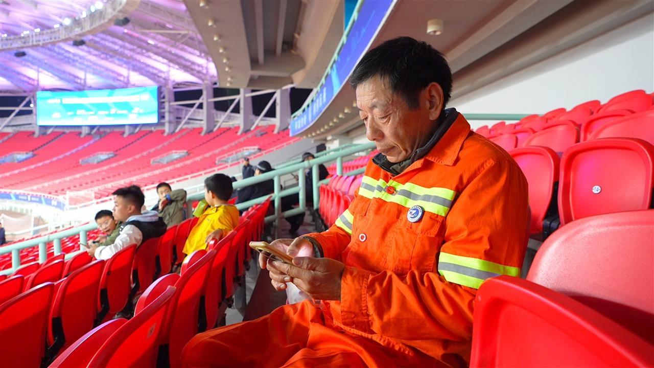 而这一次,邓顺兰和队友们迎来了特别的“身份转变”——作为受邀嘉宾,他们身着整洁的环卫工作服,以观众身份走进武汉体育中心观看比赛。“能从‘守护者’变成‘参与者’,坐在场内感受现场氛围,这种被尊重、被看见的感觉,让我心里特别暖,也特别幸福。”邓顺兰的脸上洋溢着兴奋,话语中满是对这份惊喜的珍视。