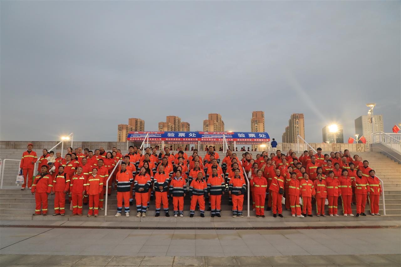 比赛现场,一片醒目的“橙色方阵”,成为当晚赛场上一道温暖的风景。环卫工人们拉起助威横幅“扫净一城尘,踢出一片天”,与全场球迷一同为球员的精彩表现欢呼。他们不仅是城市环境的守护者,也是城市文明的参与者和见证者。除了环卫工人方阵,现场身着蓝色马甲的文明观赛引导员也格外亮眼。作为“为热爱呐喊,为文明点赞”系列活动的重要内容,现场50名文明观赛引导员手举“激情呐喊、文明观赛”引导牌提醒观众文明观赛,环卫工人们也身体力行,主动清理区域垃圾,与引导员们一同为比赛增添亮色。