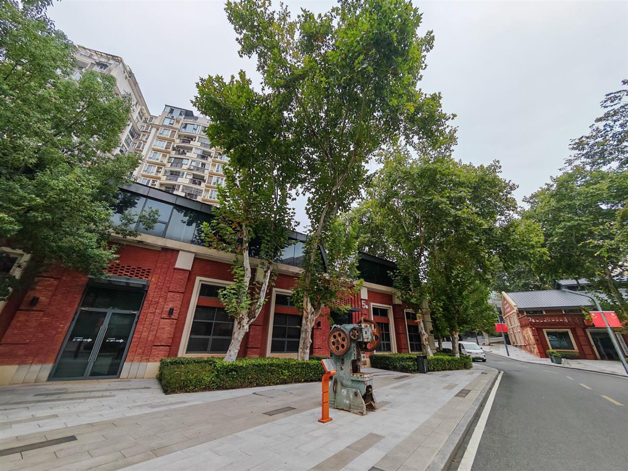 在梧桐大道上,红砖砌成的办公空间色彩鲜明,风格独特,与周围的绿植相互映衬,混凝土、锈钢板等工业元素仿佛诉说这里曾经的辉煌。