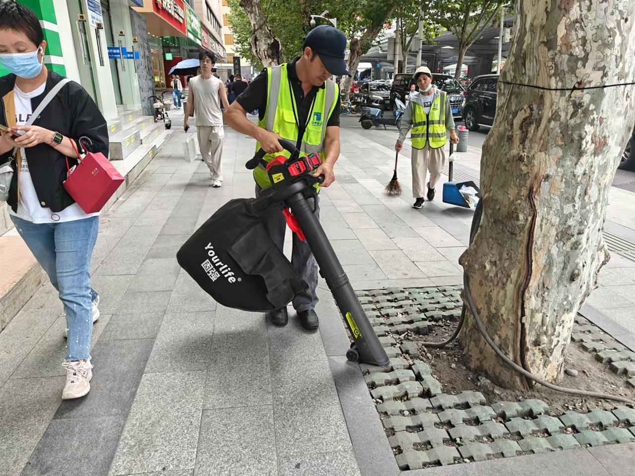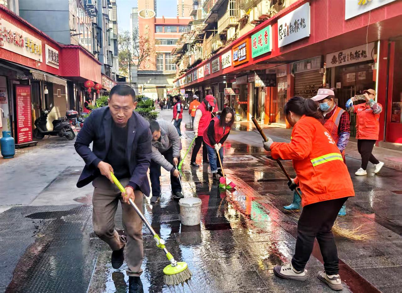 宝丰街道环卫所与来自辖区各社区的60名志愿者一道开展“爱心替岗”,他们手持帚箕锹铲钳等工具,在辖区街巷、居民院落、社区广场等地段,进行清扫保洁、冲洗地面。在站邻社区,他们一边清扫、一边积极引导商家、市民参与其中,以实际行动为卫生文明献力的同时,也让平日里辛勤劳动的环卫工人们得以短暂休息。