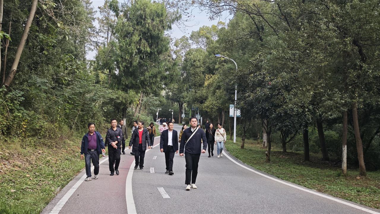 随后队伍转往龙灵山生态公园。考虑到老同志们的身体状况,社区特意选取平缓安全的步道,工作人员一路陪伴照料,确保大家轻松行走、安心赏景。山风拂面,笑语相伴,志愿者们精神饱满,或结伴健步,或拍照留念,在自然中舒缓身心,在交流中深化情谊。