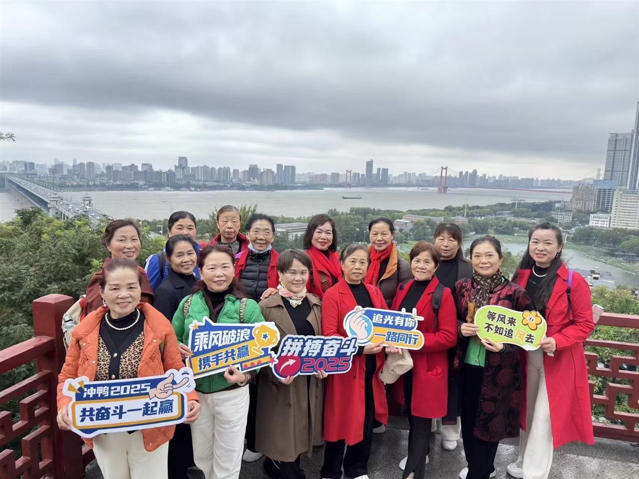活动中,“传帮带”理念贯穿全程:年轻居民与长者“结对子”,龟山步道“音乐盲盒挑战”里,长者凭人生阅历主导歌曲竞猜,年轻人协助用手机记录瞬间;“桃园三结义”“中华第一鼎”等文化打卡点,长者讲述历史典故传承民间知识;黄鹤楼合影环节,年轻人耐心指导短视频创作,化解“数字鸿沟”。同时,社区构建全方位安全守护体系,每辆大巴都配专业教练与志愿者提供“一对一”服务,医疗人员携急救物资全程随行,让长者无忧尽享秋日乐趣,实现“老有所乐”。