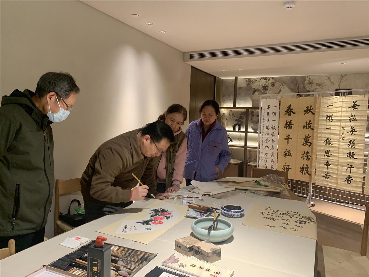 10月26日,一场别开生面的文化盛宴在武汉市江汉区万松九里社区精彩上演。中国硬笔书法家协会理事、湖北省硬笔书法家协会副主席、知名书画家陈艾先生应社区邀请,以节粮节俭为主题现场挥毫泼墨、绘就丹青,以一种即创即展、亲民接地气的形式,为社区居民带来了一场视觉与精神的双重享受,受到了居民们的热烈欢迎。