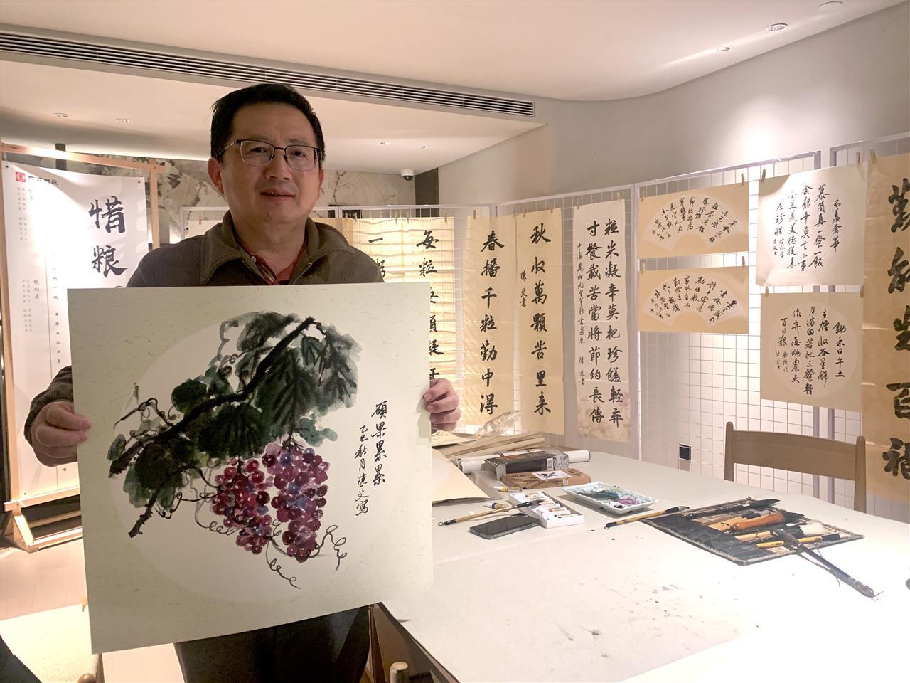 而在“春华秋实庆丰收”板块,陈艾先生饱蘸浓墨重彩,在宣纸上尽情挥洒性情。以葡萄为主题创作的《硕果累累》,画面中葡萄晶莹剔透、饱满圆润,仿佛散发着诱人果香,寓意丰收喜悦;以柿子为主题绘就的《喜庆丰收事事如意》,鲜艳的柿子挂满枝头,象征着生活的富足与美满。这些庆丰年的水墨画,不仅展现了大自然的美好与生机,更表达了对辛勤劳作的赞美和对丰收的感恩之情。