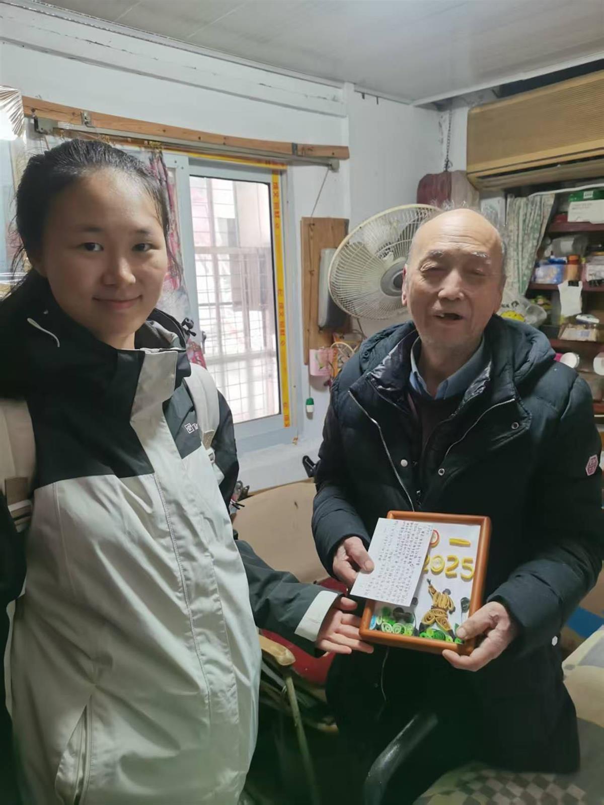 学生代表将精心制作的手工纪念品赠送给老人,邵老激动地接过礼物,并展示了自己珍藏多年的老照片和纪念章,与大家共同追忆峥嵘岁月。