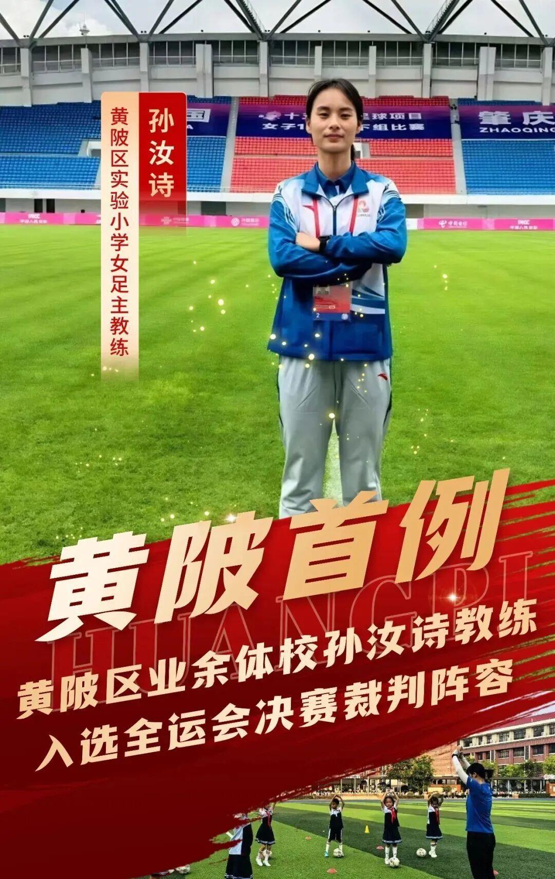 近日,中国足球协会正式公布2025年全国运动会足球(女子成年组)决赛裁判团队名单,武汉市黄陂区业余体校女足教练员孙汝诗成功入选,成为黄陂区足球历史上首位执裁全运会女足决赛的女子裁判员,用专业实力为黄陂体育事业再添浓墨重彩的一笔。