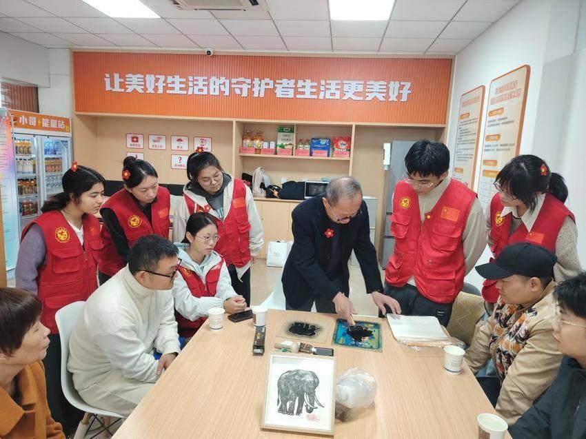 在版画拓印环节,流动党员、大学生志愿者兴致勃勃地开始尝试:蘸取颜料、涂抹模板……他们认真地将宣纸铺在拓片上,用拓包轻轻地在宣纸上按压,直到图案逐渐呈现出来。家住翠园社区的流动党员李祥坤体验过后,分享着自己感悟:“平时忙着上班,很少有机会这样静下来了解家乡的变化,听了熊老的讲述,我对青山更有感情了,也觉得自己的工作更有意义。”流动党员毛爱萍则表示,服务驿站让她找到了“归属感”,这次活动更是让她感受到了组织的关怀,今后会积极参与社区服务,发挥党员的先锋模范作用。