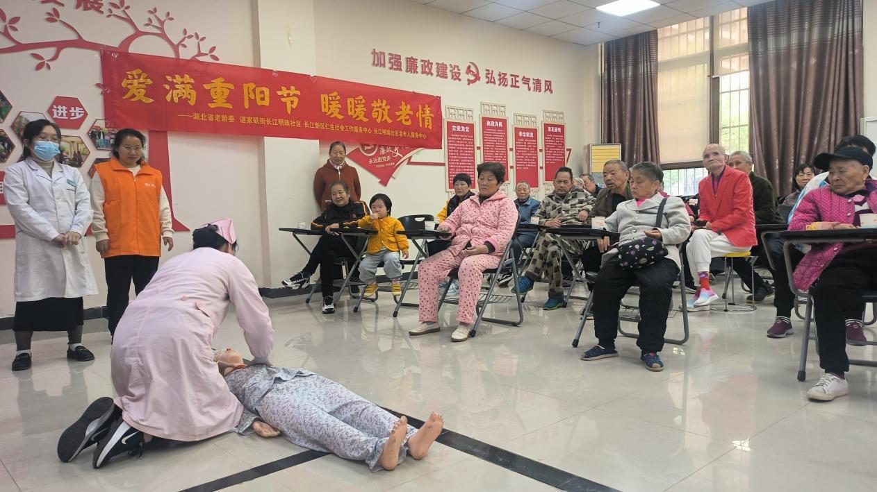 10月27日上午,武汉长江新区谌家矶街长江明珠社区老年人服务中心里笑声朗朗、药香氤氲,湖北省老龄产业协会携手仁生社会工作服务中心、谌家矶街道共同举办的“惠老助老,弘扬孝亲敬老美德,品质生活共建老年友好社会”——2025年重阳节联合公益行动在此温暖启幕。30位社区长者在志愿者“一对一”陪护下练八段锦、学急救、答科普、领慰问,度过了一个“健康味”十足的重阳节。