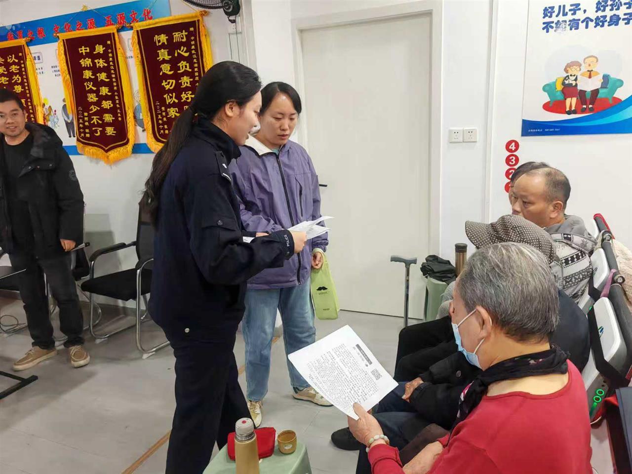 民警与社区居民围坐,细致讲解了辖区发生的每一起真实案例,提示居民时刻保持警醒,守牢“钱袋子”护好“养老钱”。会后,民警向到场老年朋友分发了防诈“小秘籍”,并对社区排查的安全隐患问题向各居民作了细致汇报。
