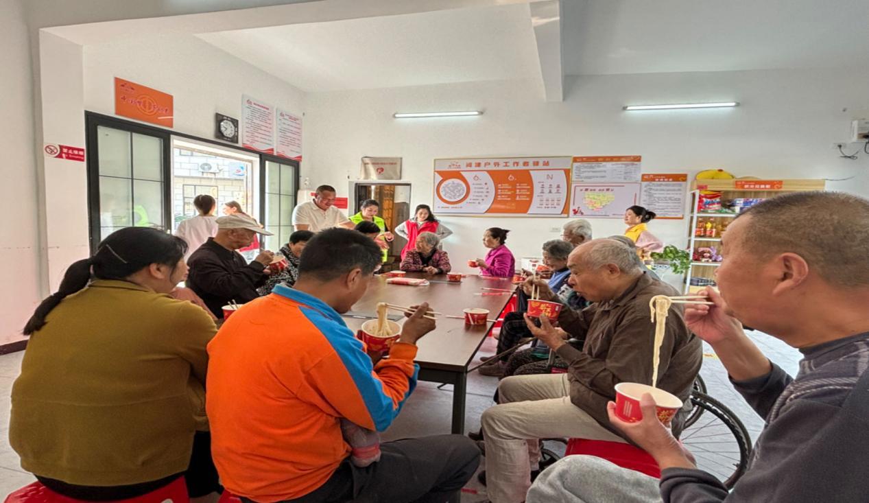 最让人暖心的莫过于“长寿面宴”环节。社区黄书记系着围裙在灶台前忙碌着,锅中的水翻滚冒泡,细长的面条下锅后渐渐变得软糯。为了照顾牙口不好的老人,黄书记特意将面条煮得格外软烂,还细心地准备了鲜嫩的肉末浇头。“黄书记,你这面条煮得真香,比我家孩子做的还好吃!”一位老人接过热气腾腾的长寿面,尝了一口便忍不住称赞道。老人们端着碗,细细品尝着筋道的面条、鲜美的汤汁,热气模糊了眼镜,却暖透了心田。这一碗碗长寿面,不仅是舌尖上的美味,更是社区对老人们最真挚的关爱与“健康长寿”的美好祝福。