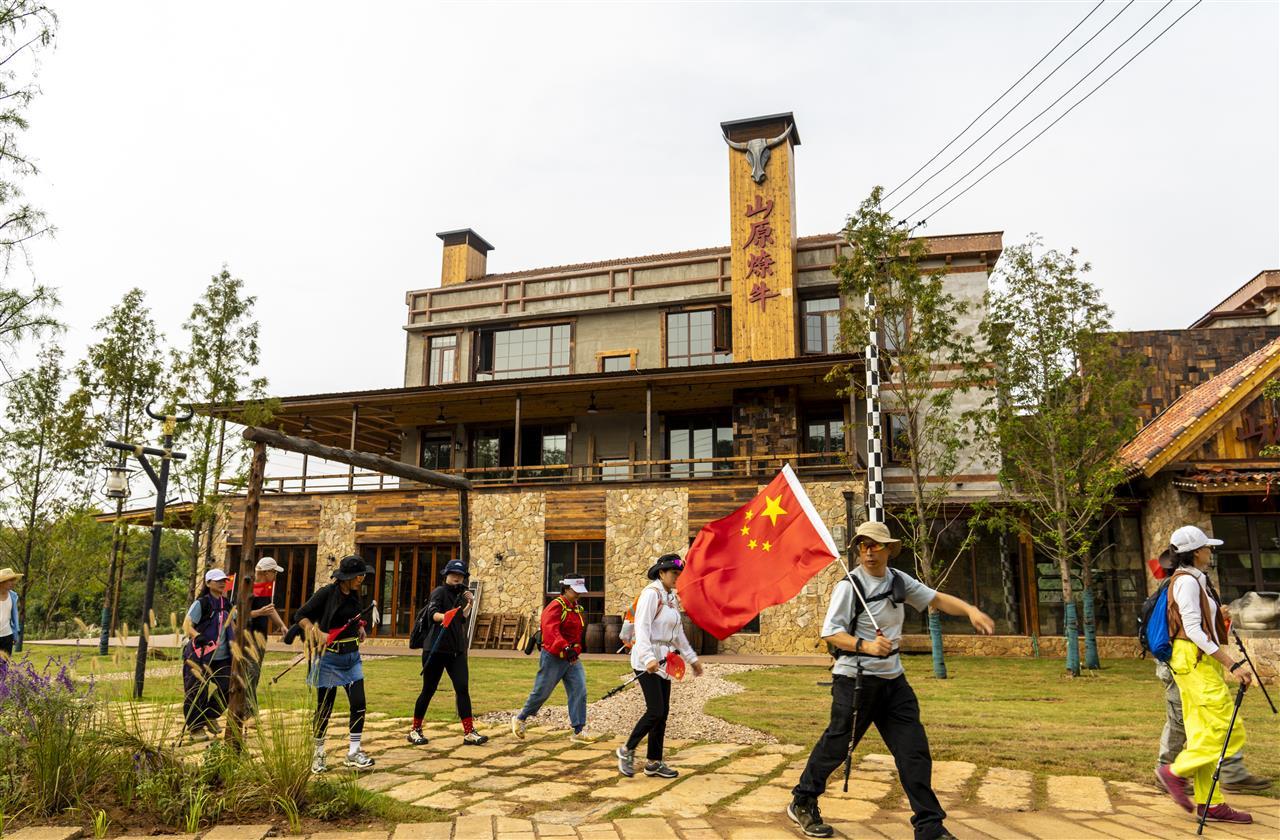 一进村,她们便打开手机,打卡拍照。在运动村,以电影《决战犹马镇》为原型,影视元素、牛仔打卡主题等遍布园区,胡元胜和闺蜜们不断变换角度取景。“我们都喜欢运动,孙子现在上小学了,有了更多时间,刚好这里开业,在家附近就可以徒步运动,十分方便。”