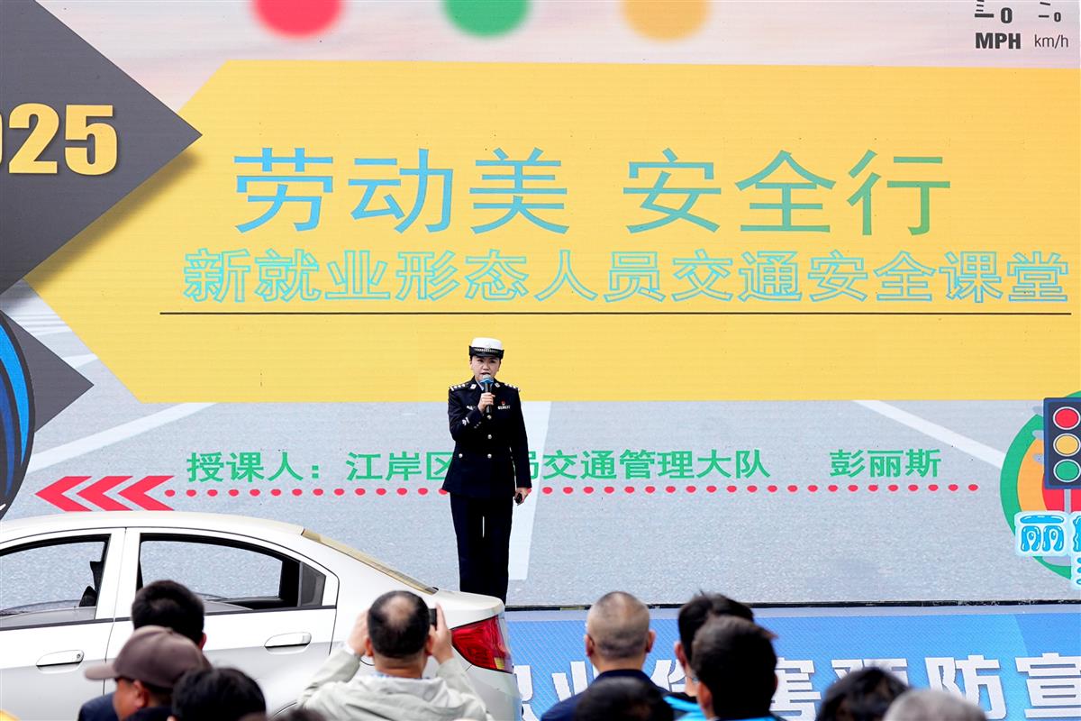 “电动自行车新国标要求时速不能超过多少?”话音刚落,台下骑手迅速举手答道:“25公里/每小时!”这一幕出现在湖北省工伤预防宣传活动的现场。10月27日下午,一场专为外卖骑手定制的安全宣传课正式开讲。来自武汉市公安局江岸区分局交通管理大队“丽斯交通课堂”的宣教民警彭丽斯,以互动式教学与现场近百名外卖骑手展开了一场“交通安全对话”。