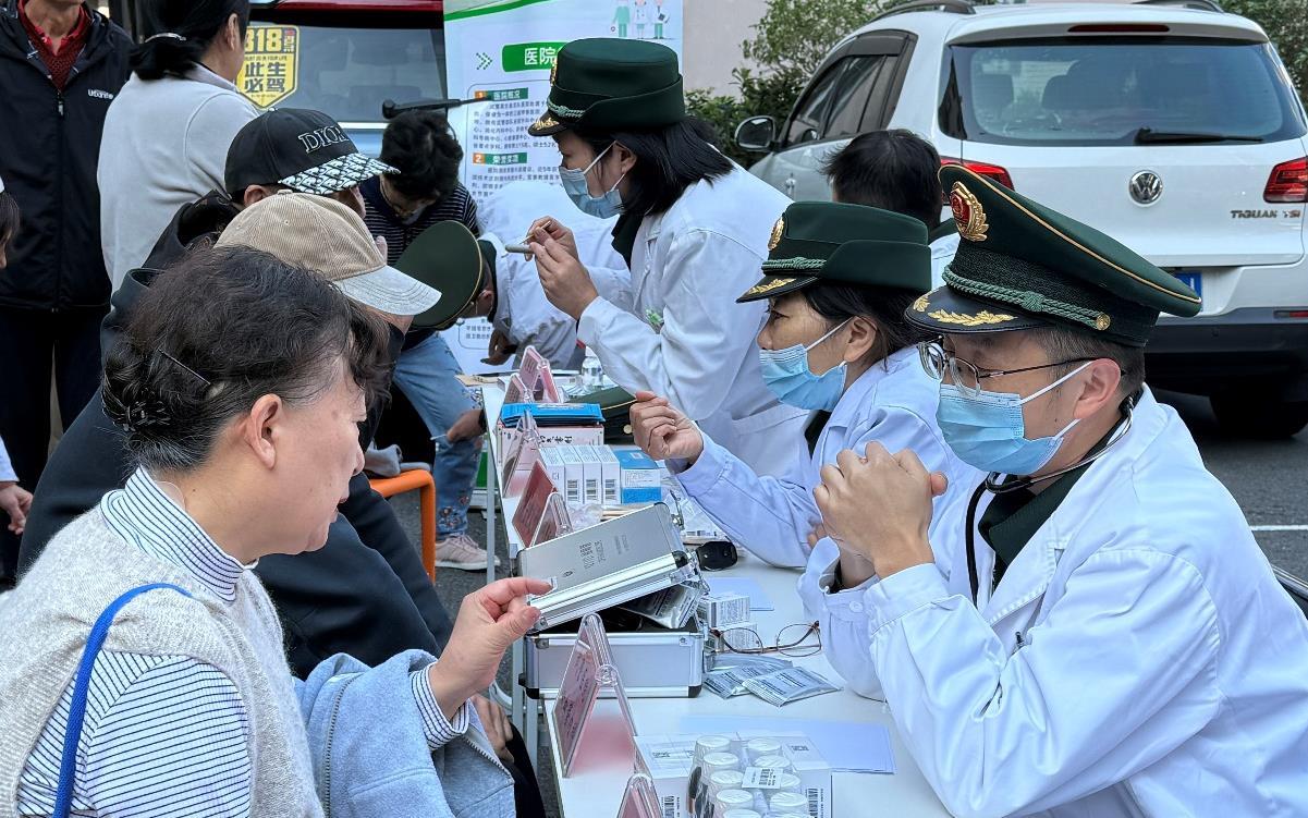 活动现场,医疗专家们化身“健康卫士”,搭建起便民义诊服务点。医护人员身着白大褂、佩戴军帽,耐心为老人们测量血压、开展健康咨询,针对高血压、糖尿病等老年常见病进行细致问诊,还为老人们讲解慢性病管理、合理用药等知识。