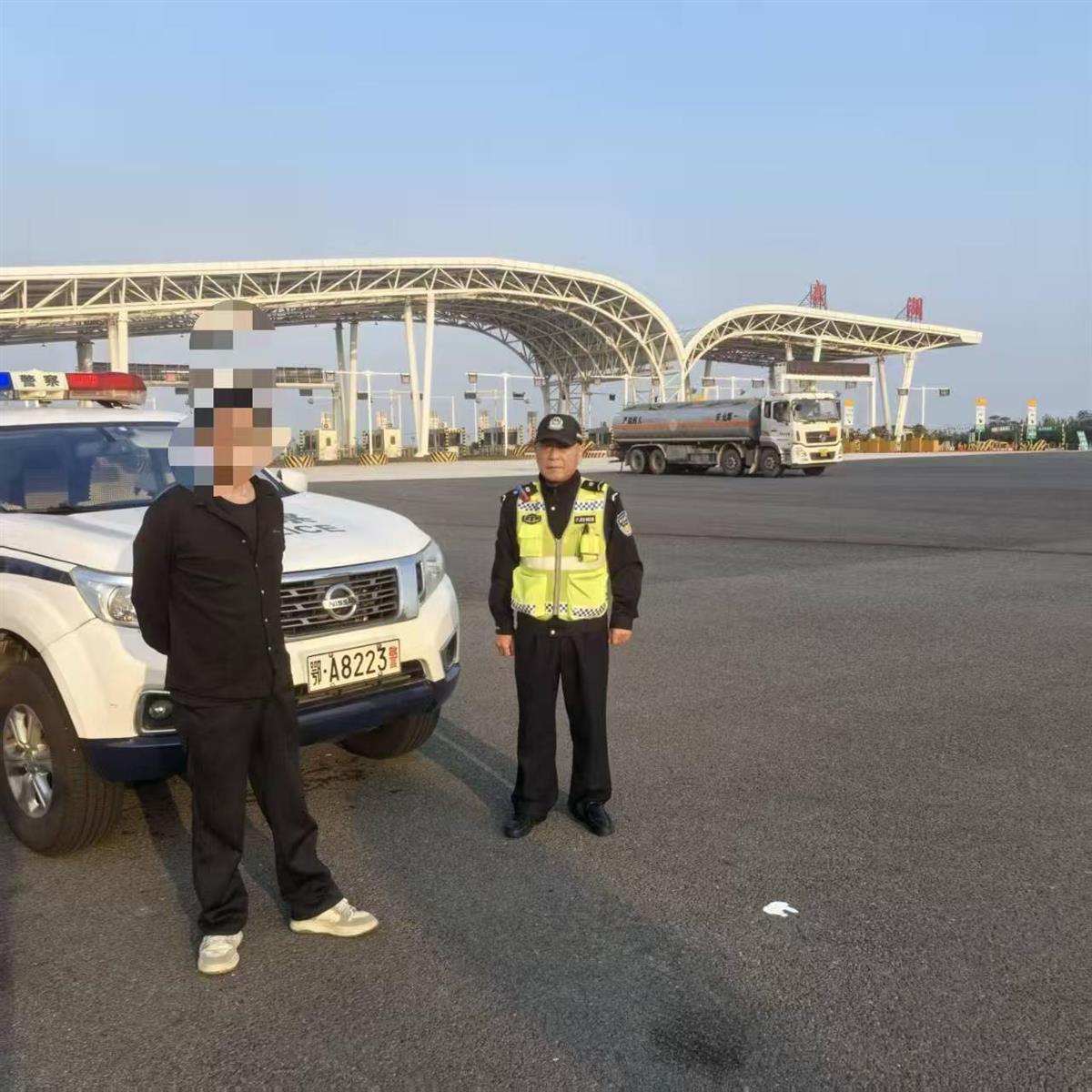 就在刘先生手足无措之际,武汉市公安局交通管理支队二大队四中队民警王敢、辅警张齐志正好驾驶巡逻车在三里桥服务区开展雾天专项巡逻。两人发现神色慌张的刘先生后,立即停车上前询问情况。在耐心倾听刘先生的遭遇并核实相关信息后,考虑到雾天路面危险,且刘先生一时难以找到合适的交通工具,两人当即决定伸出援手,“您别着急,我们送您到武湖收费站,那里打车更方便,也能确保您的安全。”