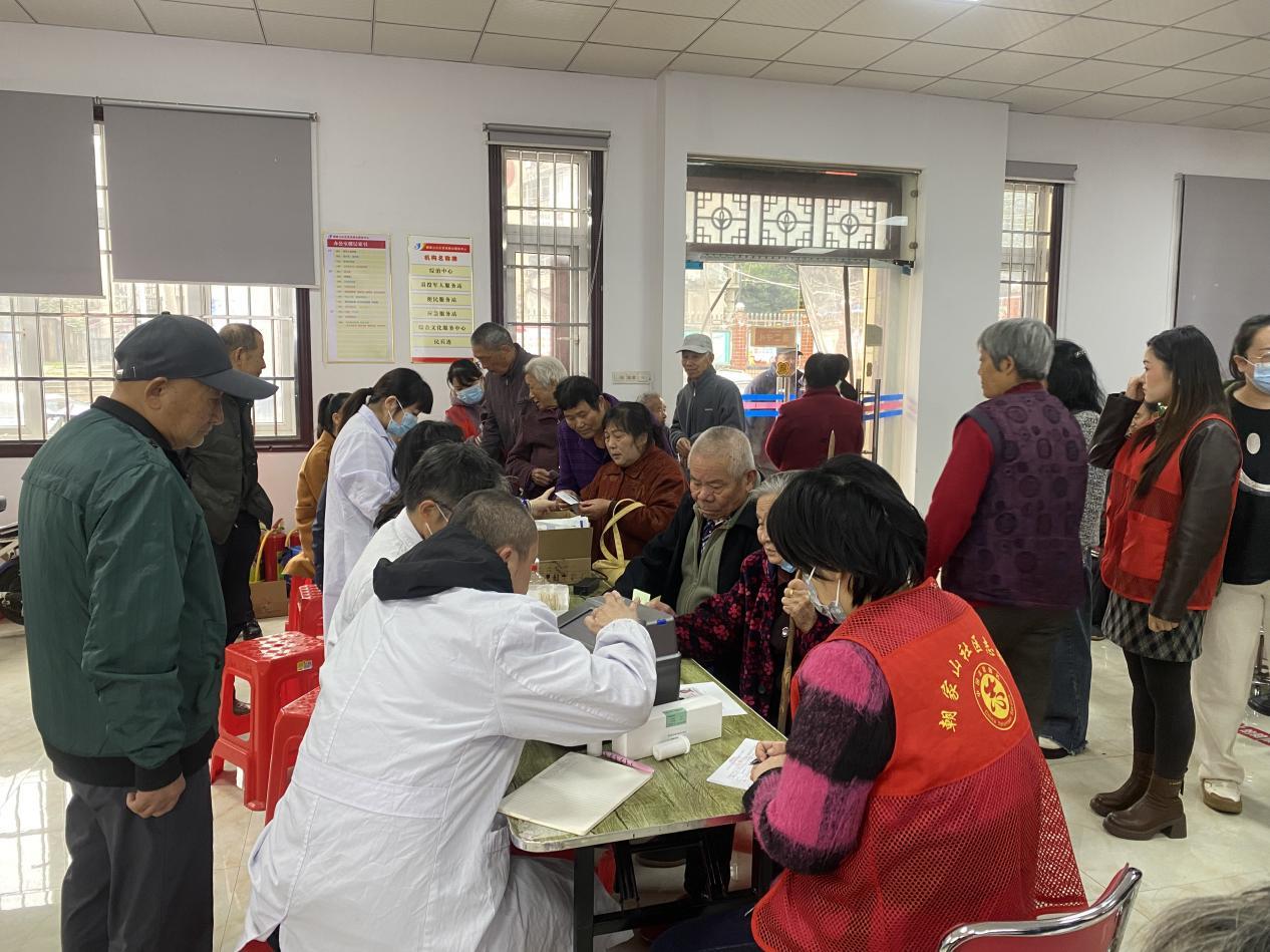 清晨的阳光刚洒进社区大厅,这里已热闹起来。老人们揣着对健康的牵挂早早赶来,在工作人员的引导下有序排队。考虑到老人们腿脚不便、不宜久站,社区提前贴心摆放了数十张座椅,还准备了热水和老花镜,让等候过程更显舒适安心。现场虽人头攒动,但叫号、登记、检查等环节衔接紧密,老人们依次领取号码牌,听到叫号后便有条不紊地配合抽血、眼底检查,整个流程顺畅高效,不时传来医护人员耐心的叮嘱声。