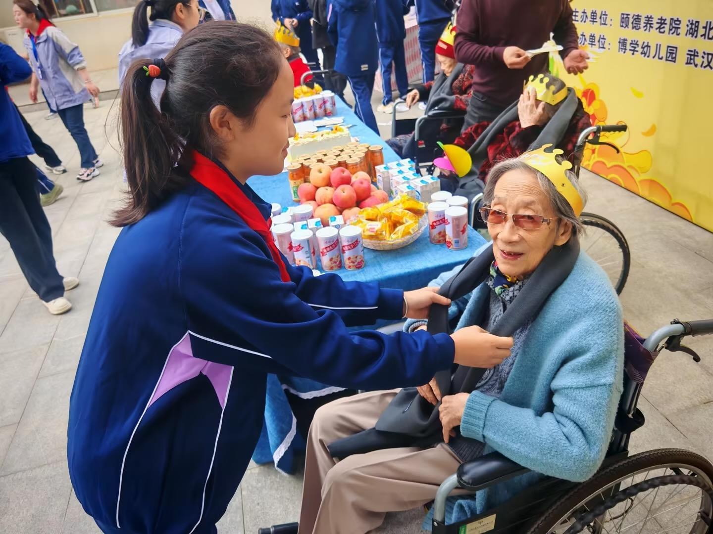 10月29日,武汉经开区沌阳街道江大园社区居家养老服务中心、颐德养老院、湖北颐信养老产业有限公司等单位,携手博学幼儿园、武汉碧桂园学校、湖锦酒楼等爱心单位,共同举办“重阳敬老传温情,银龄同庆贺生辰”主题活动。