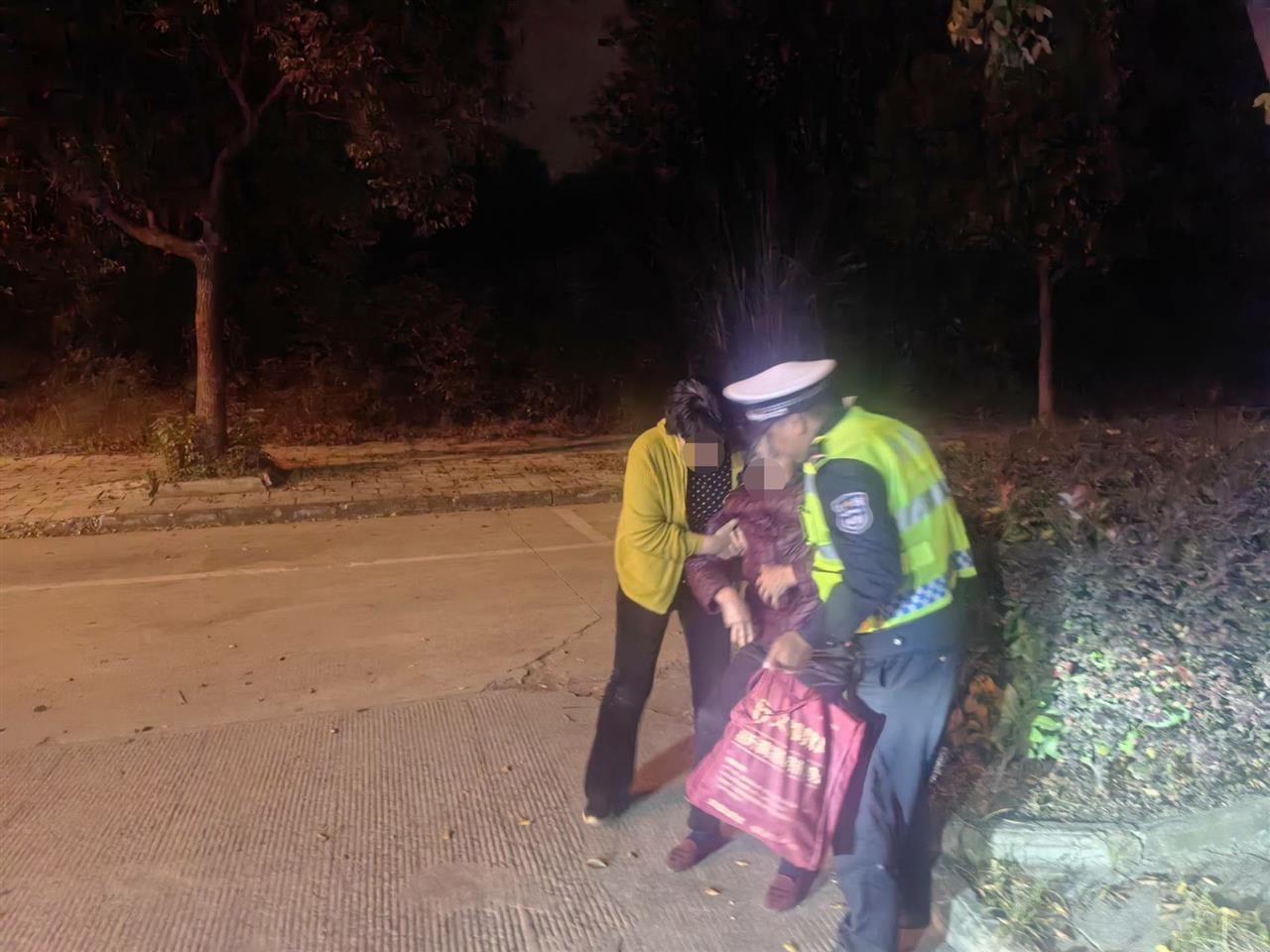 10月29日晚,武汉市公安局黄陂区分局交通管理大队汉警快骑机动队在王家河街道火塔公路巡逻时,发现一名银发婆婆独自坐在路边。经了解,老人因迷路徘徊数小时,最终在民警将其安全送回家。