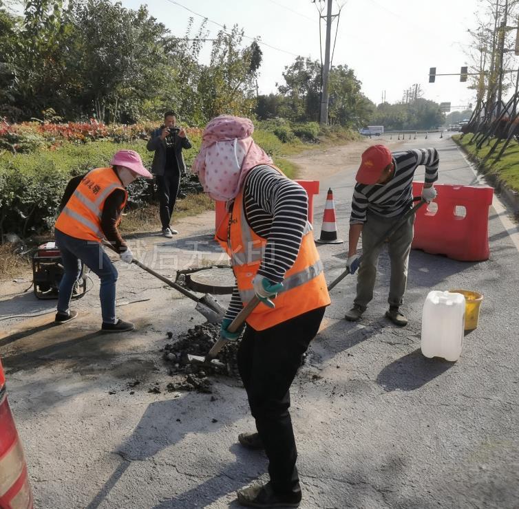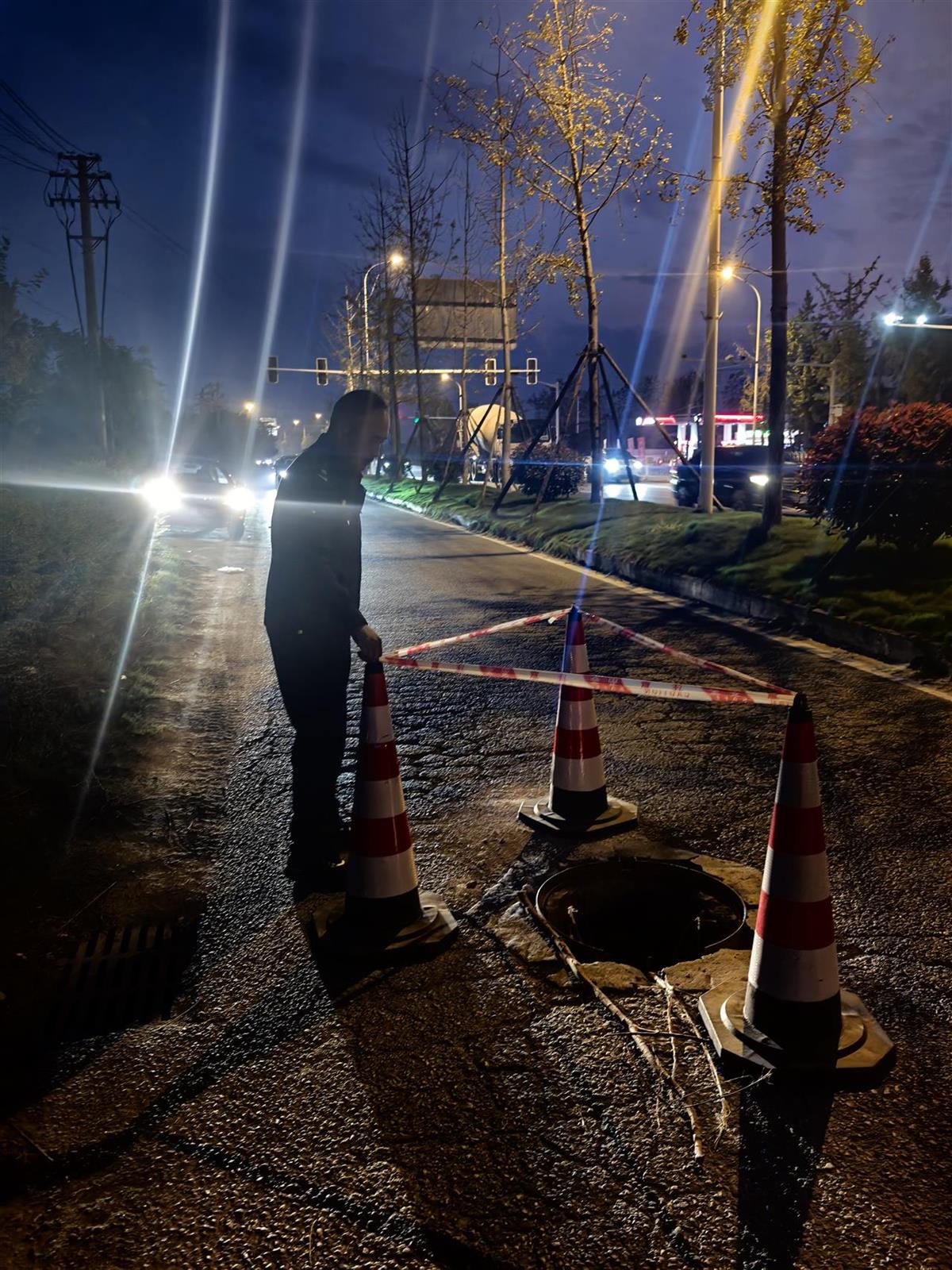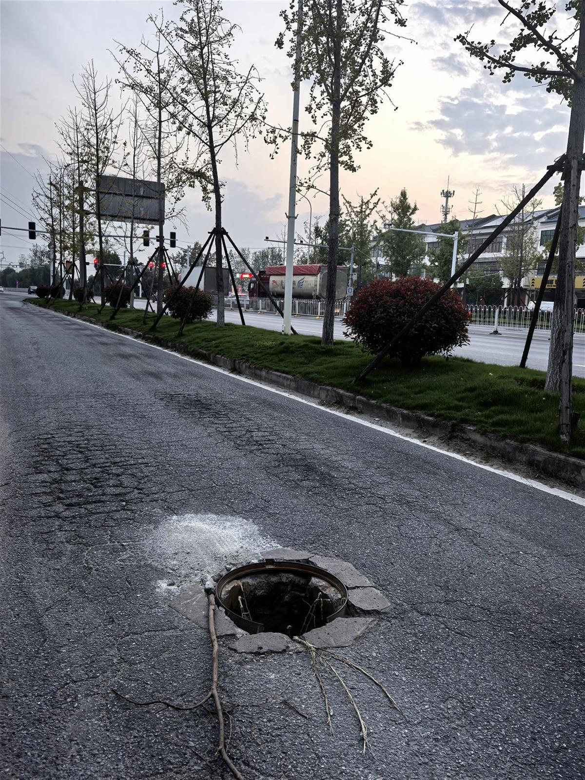当时正值傍晚,光线逐渐变暗,破损的井盖不易被发现。刚下班的汪集街城管办主任夏锦平路过此处,迅速做出反应:他先在现场设置简易警示标识,并引导非机动车绕行,随后通知城管执法人员到场加强警示,同时向新洲区城管执法局指挥中心上报情况,告知具体点位及隐患状况。