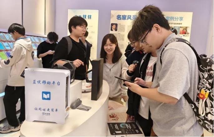 在湖北中文在线数字展厅,师生们体验了“书香中国”“慧读”“蓝悦”等核心产品。目前,这些平台已在2000余所高校、公共图书馆及上万所中小学、企事业单位中广泛使用。公司正持续借助5G、AI、AR/VR等新技术,不断升级数字阅读体验,打造覆盖图书馆、景区、校园等多场景的全民阅读新生态。