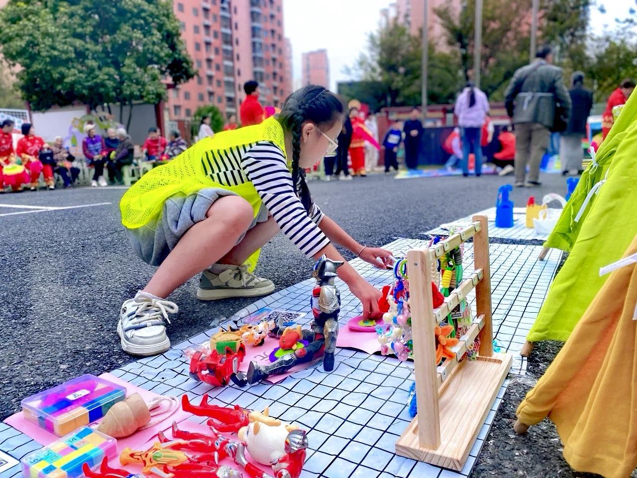 环保文创成果区充满惊喜:用废旧卡纸制作的干花书签、用塑料瓶改造的装饰摆件……一旁的文创义卖角由“碳绿达人”负责,居民们争相选购心仪的作品,义卖收入将全部存入社区公益慈善资金,反哺社区环保事业。